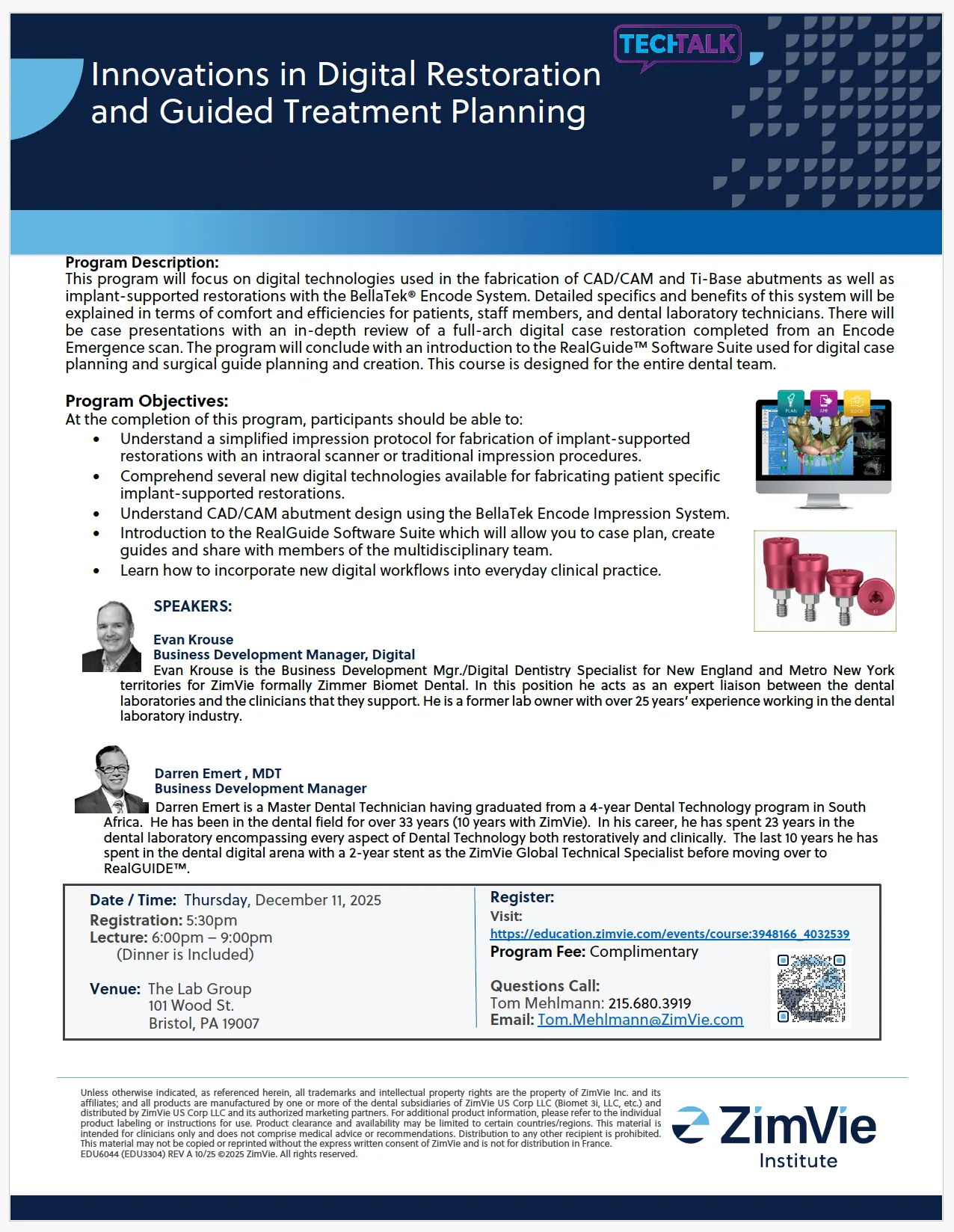 Cutting-edge Digital Restorative Techniques with The Dental Lab & ZimVie